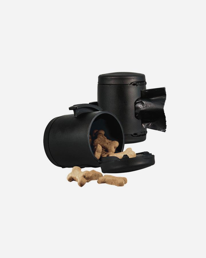 The Flexi Vario Multibox comes in black and grey colors, with color-coordinated hinged lids to match your leash handle.