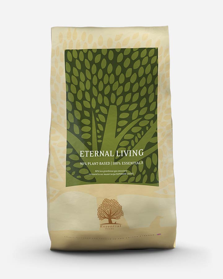 Essential Eternal Living is a 90% plant-based and 100% vegetarian meal for adult dogs. Protein-rich meal that offers the same energy distribution as all the other Living meals.